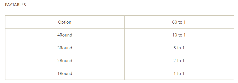 一方のサイドに配置されたカード4枚の模様が全て同じ場合、当該サイドのオプションに賭けた金額の60倍支給