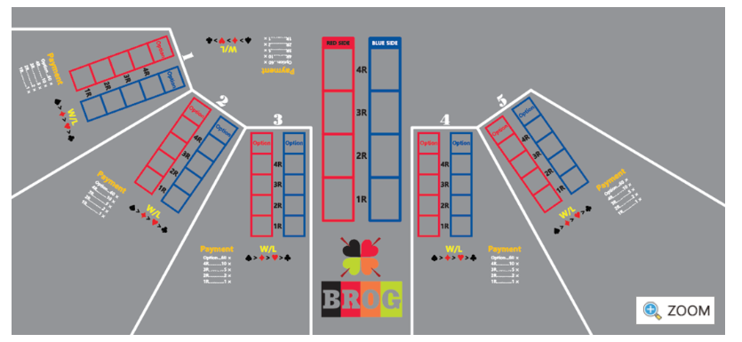 各ラウンドごとにレッドサイドとブルーサイドのどちらかを選択して賭けをします。 (同時ベッティング不可)