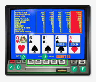 一定のコインor紙幣をマシンに投入し、ベッティング金額を選択してから進行ボタンを押すと、5枚のカードが届きます。 5枚のカードを確認した後、あらかじめ決められたカードの序列に合った組み合わせを作るために、交換するカードと所持するカードを決めます。カードを確定した後、進行ボタンを押すと所持することに決めたカード以外のカードが交替され、新しく作られたカードの組み合わせがあらかじめ決められたカード序列と合えば、それに該当する授賞金を支給されることになります。