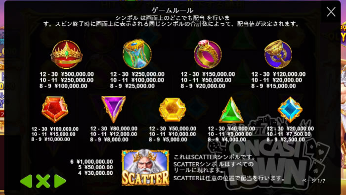 ゼウス以外も、シンボルや背景など全体的に神々しい雰囲気のスロットです。